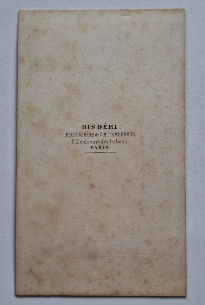 This carte de visite was auctioned as ‘Disderi Carte de Visite – Victorian Man’, the seller evidently not knowing who it was which was lucky for me price-wise.