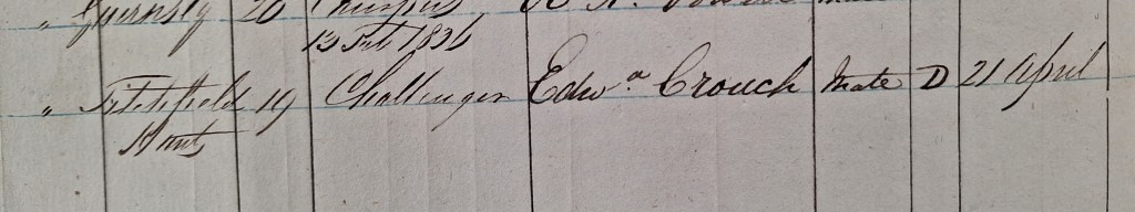 But it was actually a different Edward, with the last name Crouch, who was on the Excellent and the Blonde. Fitzjames had probably never heard of young Edward Couch before 1845. So let’s set the record straight about this mix-up of Edward CROUCH (born 1816) and Edward COUCH (born 1823).
