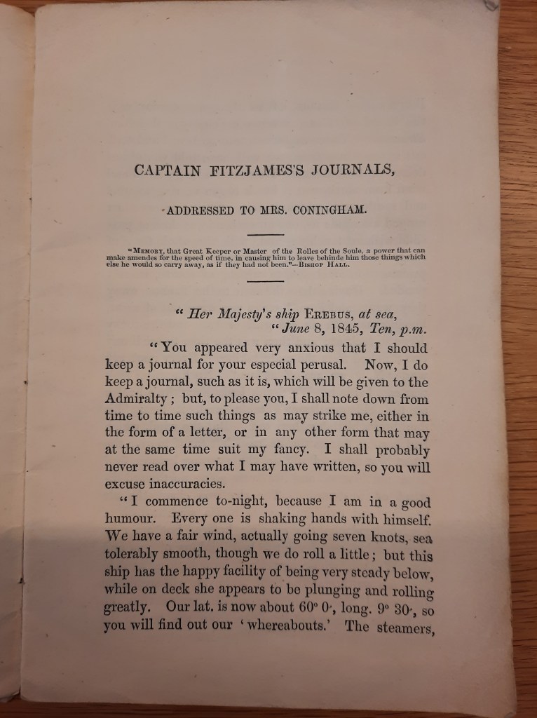Printed booklet ‘The Last Journals of Captain Fitzjames, R.N., of the Lost Polar Expedition’, National Maritime Museum, Caird Library, Greenwich (MCL/47; MS1958-024)