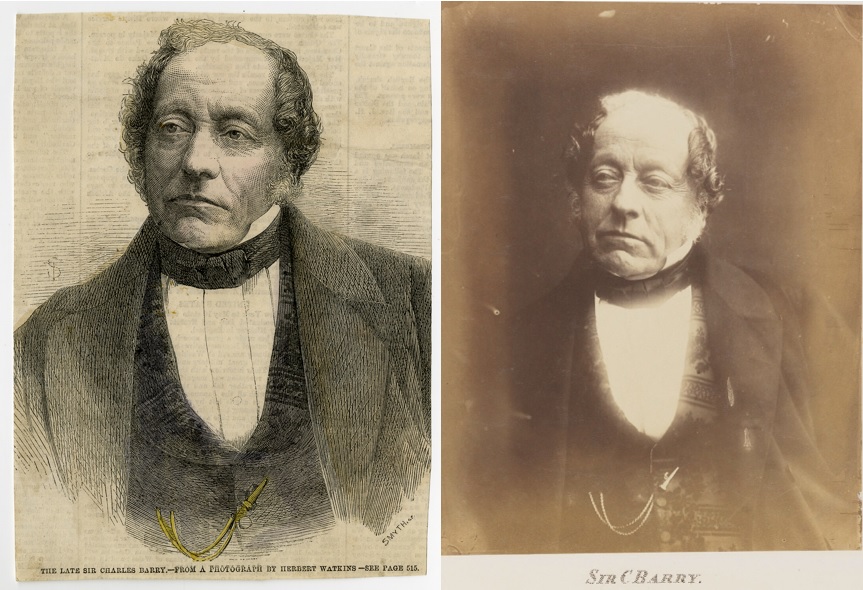 The engraver who made the Franklin Expedition portraits is Frederick James Smyth, whose signature “Smyth” is visible in the lower right corner of Henry Collins’ portrait. [see left] Smyth produced many works for the ILN, such as a panorama of London in 1845. This panorama could not be printed in reverse or else it would not be correct. When comparing the other portraits engraved by Smyth that were based on existing portraits, we can see that he maintained the orientation of the image he was copying: