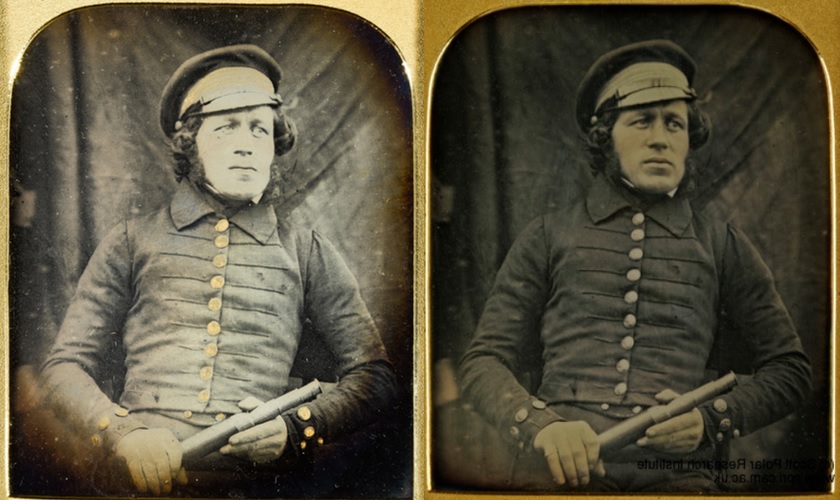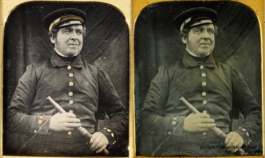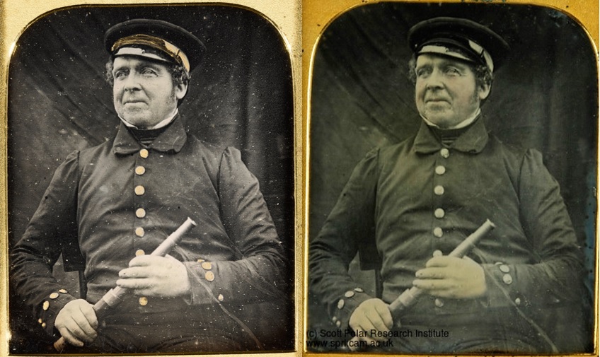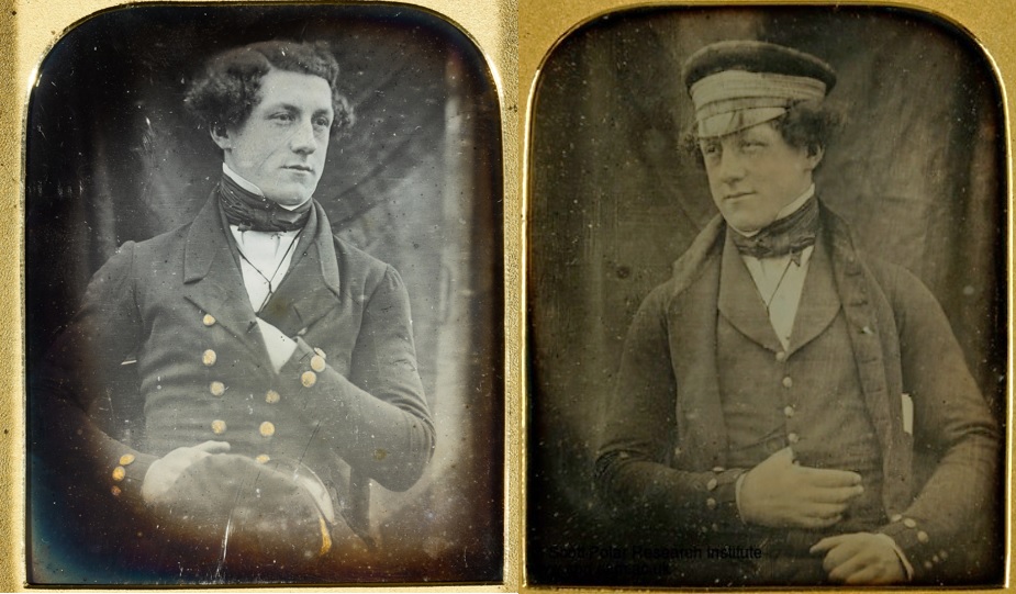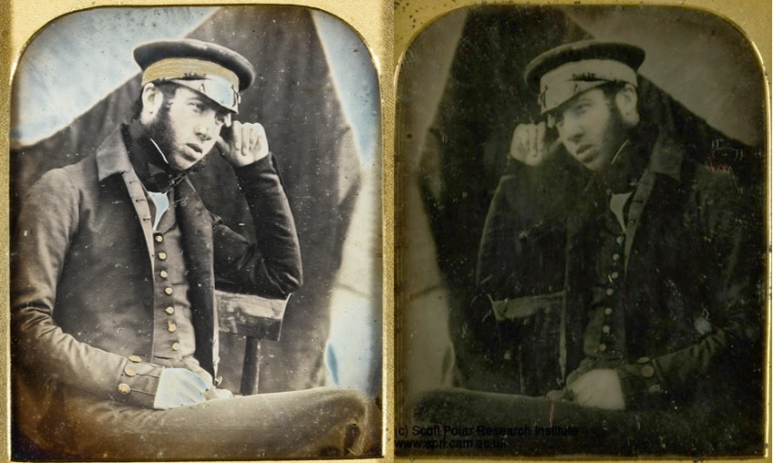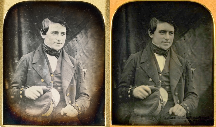 Notice however how the article says that Lady Franklin and Beard both own a “case” of the portraits. The set at SPRI does not come in a case, the daguerreotypes are all in individual cases plus the portraits of Crozier and Robert Orme Sargent are missing. It is possible that the original case was dismantled for some reason. When putting the Sotheby’s and SPRI daguerreotypes side by side, we see that with some (Franklin, Osmer, Stanley, Goodsir, and Le Vesconte) the daguerreotypes are mirror images of each other. There being no differences between the two, the only logical conclusion can be that SPRI has daguerreotypes that were made of the original daguerreotypes. This was the only way to make copies since a daguerreotype is unique. The SPRI ‘set’ actually does not seem like a set at all, but rather a combination of originals and ‘copies’. (Watch these very instructive videos by the Victoria & Albert Museum and the Getty Museum about the daguerreotype process, and see this manual by The Daguerreian Society.)