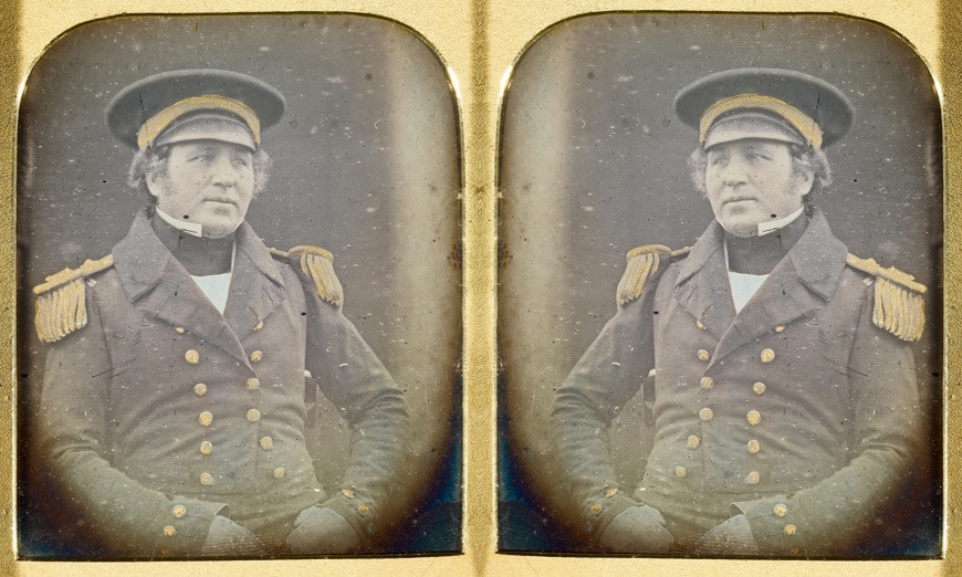 Thus far a calotype copy of a third daguerreotype of Lieutenant James Walter Fairholme (now in the Canadian Museum of History) and a copy of Lieutenant Henry Thomas Dundas Le Vesconte’s daguerreotype (still owned by descendants) have surfaced. Fairholme’s third daguerreotype was incorperated into a display of silhouette portraits of his family. This set was sold at auction by Bonhams in 2003. For Fairholme we have two Daguerreotypes with an identical pose (Sotheby’s and SPRI) of him with his arms crossed and a rather serious look. The third one (Bonhams) comes across as more casual and is indeed the one that ended up with his family. With fourteen officers having had their portrait taken, theoretically there must be more copies or original daguerreotypes still out there somewhere…