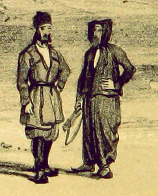 Fitzjames is wearing an Arab costume. Third in command James Bucknall Estcourt writes in a December 1835 letter to his sister that “most of us [are wearing] the men’s clothing of this country”, so Fitzjames was not unique in doing this.