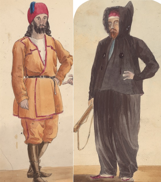 Edward Charlewood was in charge of the transport from Chendareez to Murad Pacha, assisted by interpreters Dervish Ali (William Elliot) and Yusuf Sader. It appears that Fitzjames did some more copying of Cockburn’s work: the man next to him is an exact copy of Cockburn’s portrait of Dervish Ali.